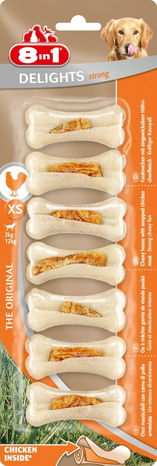 8in1 Delights Strong XS - Os à Mâcher ferme garnis de poulet pour Chien Adulte de Petite Taille - 7 pièces