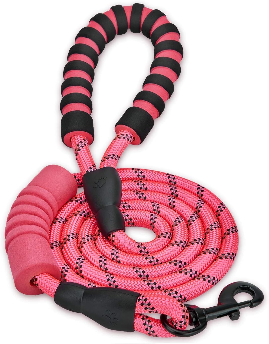 Bwiv 1.8M Laisse pour Chien avec 2 Poignées Souple Solide Corde Réfléchissants pour Moyens ou Grands Chiens à Promenade Randonnée Rose