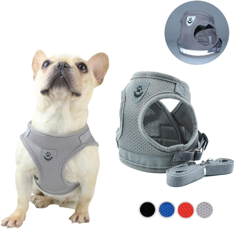 FeiLuo Ensemble Harnais et Laisse pour Chiens, Harnais Rembourré en Mesh Doux pour Chiots et Chats, Veste Respirant Réglable Réfléchissant Intérieur pour Marcher,