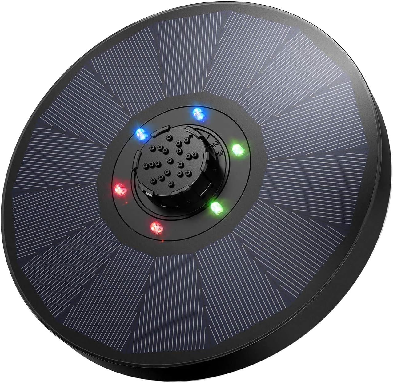 OMORC Pompe Fontaine Solaire 9V 2.6W avec LED, Fontaine Solaire Extérieure Flottante, Batterie 1200mAh,