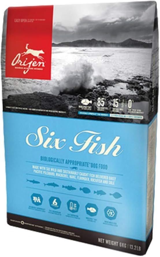 L'aliment Orijen 6 Fish Dog convient à tous les chiens adultes quelle que soit leur race. Ces croquettes sont riches en protéines, poissons frais et sont sans céréales.