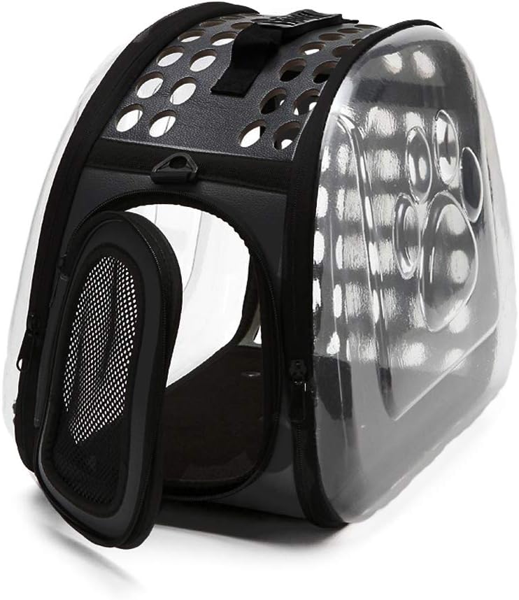 Sinbide Sac de Transport Chien Chat Lapin Respirable Démontable Lavable Pliable Oxford (Noir transparant)