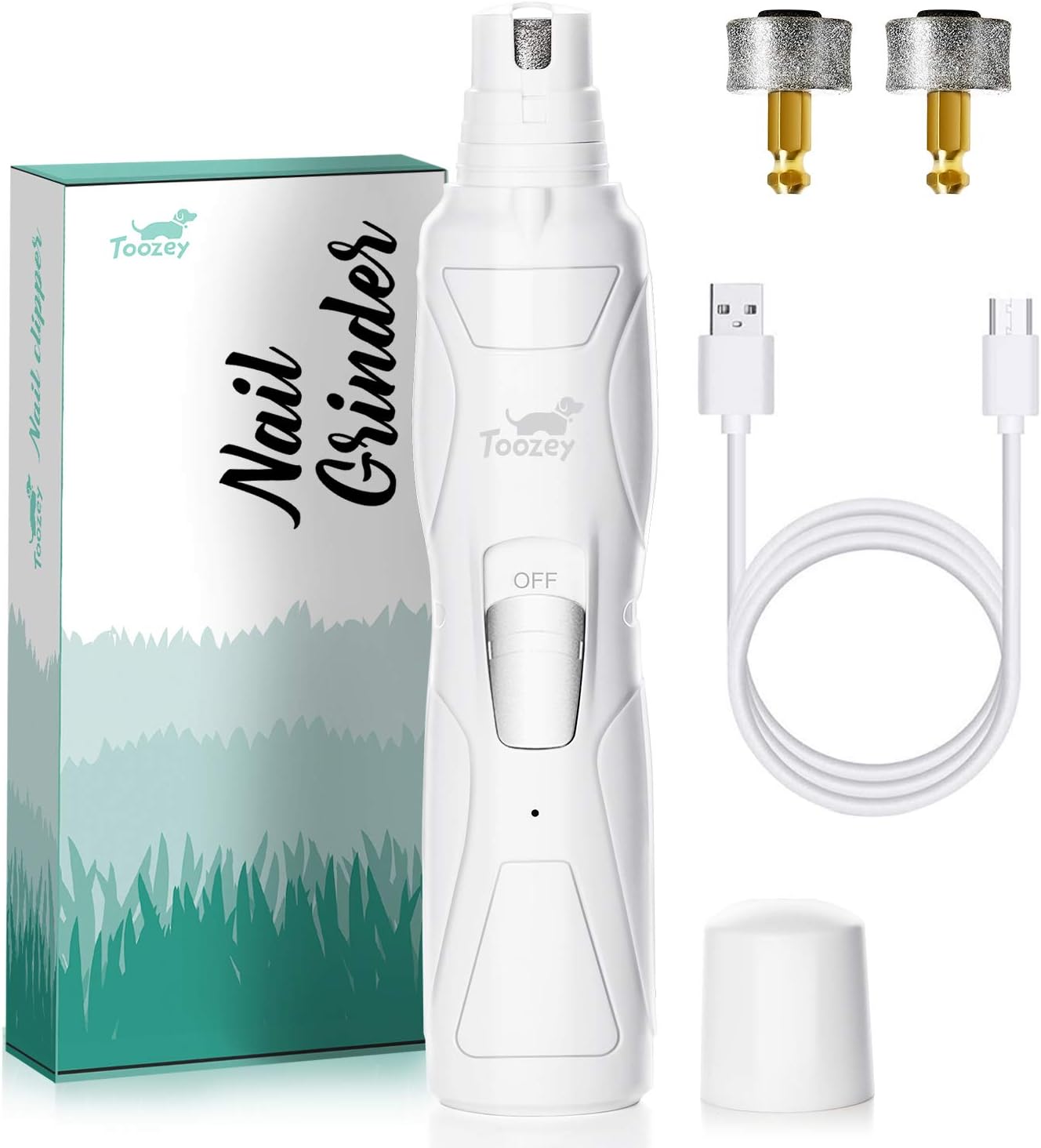 Toozey Lime à Ongle Electrique Chien Chat Rechargeable - Moteur Puissant 14W et Coupe Ongle Griffes Douce et Sécuritaire, Cisailles à Griffes à Deux Vitesses pour Chiens et Chats, Blanc