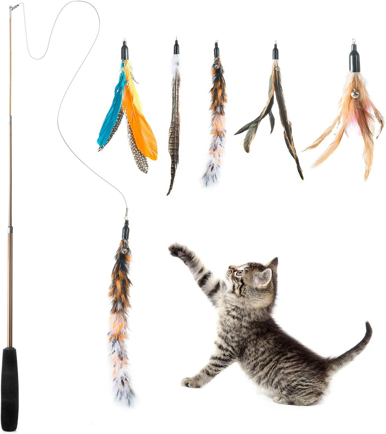Wolintek Jouet à Plumes pour Chats, Jouet de Chat,Interactif Rétractable Canne a Peche Jouet avec 5 Recharges pour Chats et Chatons