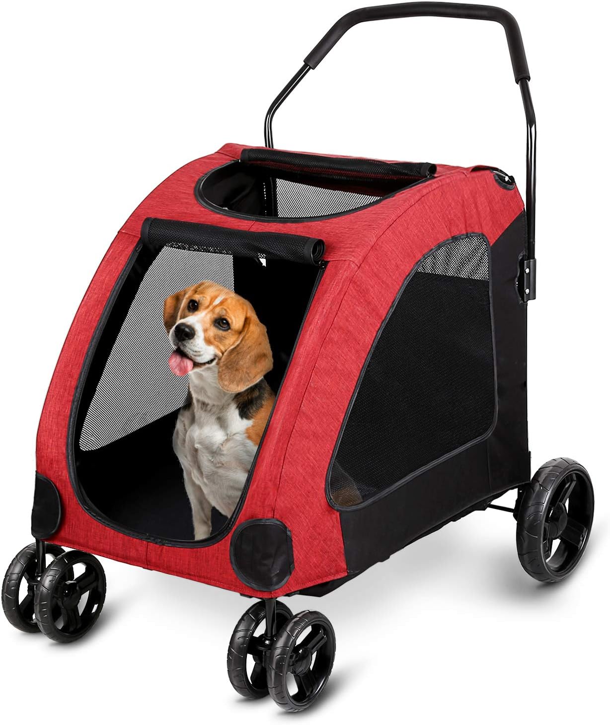 amzdeal Poussette Voyage pour Chien Pliable - avec 4 Roues en EVA, Chariot Animaux Solide et Respirant Charge à 60 Kg pour Chiens Chats et Animaux de Campagnie
