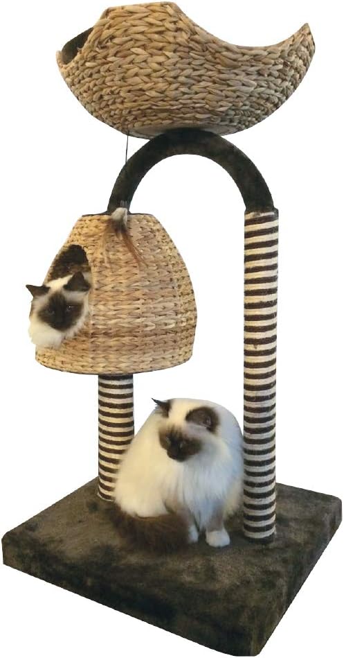 L’Arbre à chat Azalea naturel fait partie d'une collection spéciale en naturels tressés matériels (sisal, le jute, la jacinthe d'eau, des feuilles de bananier) avec des coussins confortables et des étagères en peluche. Les jeux avec des cordes va stimuler l'activité du chat. Les couchettes offrent un endroit confortable de refuge et relax. L’Arbre à chat permet aux chats domestiques de faire leurs griffes comme ils le feraient dans la nature, en préservant le mobilier dans la maison. L'unicité et l'élégance du design de ces arbres à chat le rendent parfait dans tous les décors. Dimensions 50x50x95,5 cm