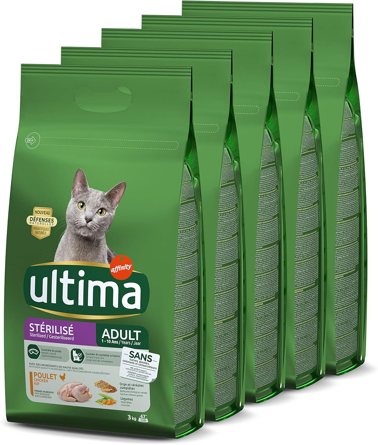 Ultima Croquettes pour Chats Adultes Stérilisés au Poulet - 5 x 3 kg - Total: 15 kg