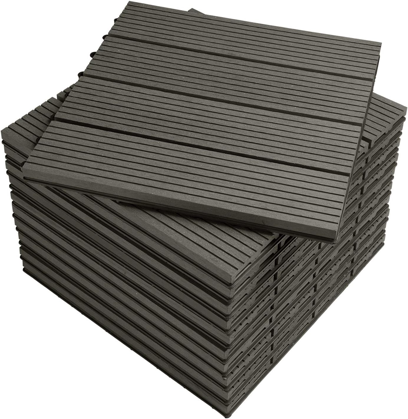 WOLTU GTF001gr WPC Carrelage de sol 30x30cm Revêtement de sol pour extérieur en composite bois-plastique Jardin terrasse système plug-in, Gris (11 pièces / 1 m²)