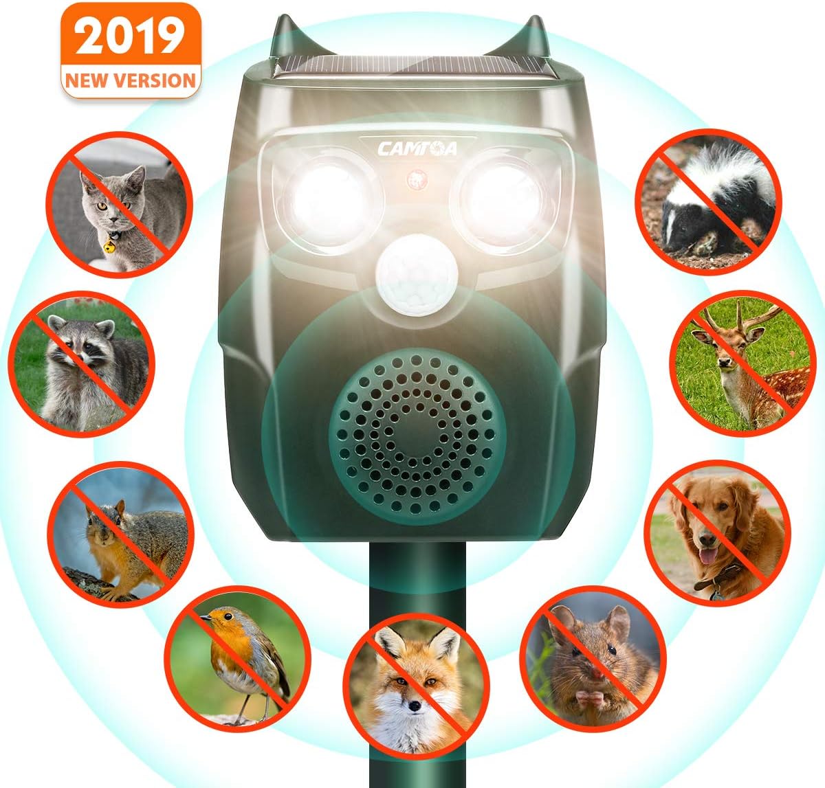 CAMTOA répulsif Solaire, ultrasons imperméables, Cerfs, Chiens et Chats, Jardins et fermes (Batterie 3AA et Recharge USB)