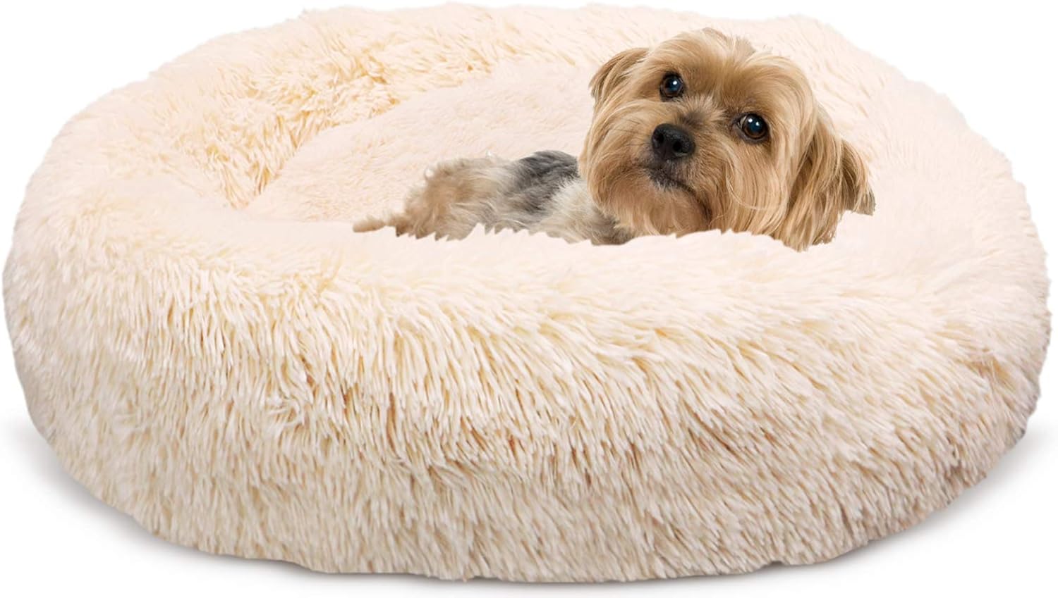 Docatgo Lit pour Animaux, lit pour Chat Donut 60x60 cm pour Chiens, Peluche en Fausse Fourrure avec Duvet, lit avec Coussin pour Animaux de Compagnie pour Chiens et Chats de Taille Moyenne